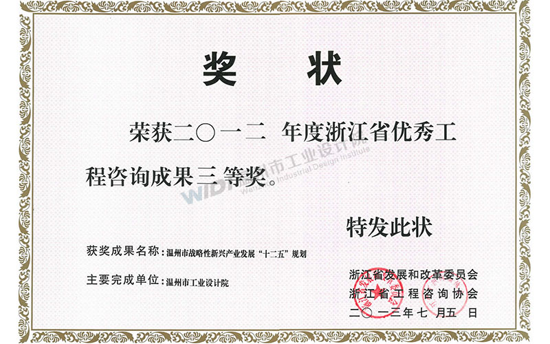 溫州市戰(zhàn)略新興產(chǎn)業(yè)發(fā)展“十二五”規(guī)劃 省優(yōu)秀工程咨詢(xún)成果三等獎(jiǎng)