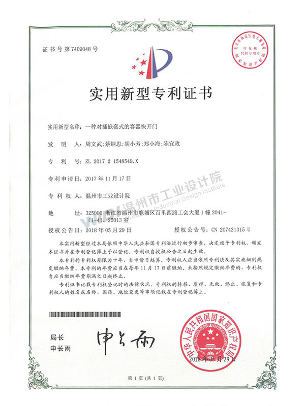 一種對(duì)插嵌套式的容器快開門
