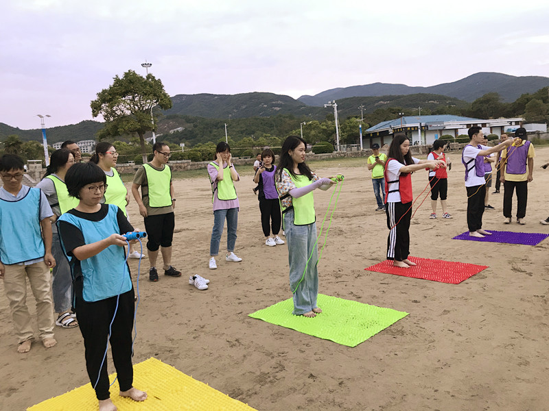 “破冰行動”首先拉開活動序幕,“破冰”即打破員工之間的拘謹和束縛,尤其是兩家單位的陌生感,讓他們在接下來的活動中能積極的參與進來。簡單的自我介紹認識之后,隊伍分成四組進行競賽,“躲避球”考驗的是團隊的整體協(xié)調配合能力;“救生圈接力賽”在裁判的一聲令下,全員接力比賽決勝負,緊張之余又趣味十足;“指壓板跳繩”難度系數(shù)高,讓隊員們摩拳擦掌,紛紛上場較量各隊實力,一起“腳”逐快樂;“聽歌識曲”輪番播放不同年代歌曲讓大家回憶經典同時能猜出歌名?,F(xiàn)場活動熱烈,參與人員熱情高漲,笑聲不斷。