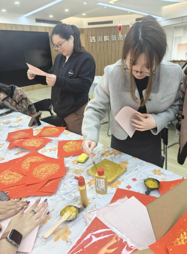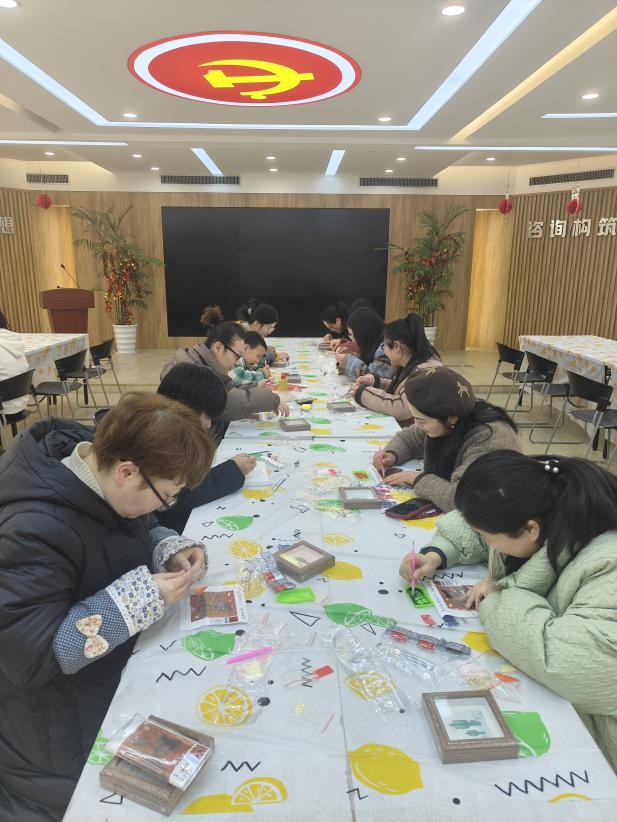 活動(dòng)現(xiàn)場(chǎng),布置得溫馨且喜慶,燈籠高掛、春聯(lián)映目、年花簇?fù)?,處處洋溢著濃郁的?jié)日氣息。全體員工熱情響應(yīng),踴躍參加?;顒?dòng)伊始,大家有序簽到并領(lǐng)取了手工DIY所需的材料。此次活動(dòng)準(zhǔn)備了多個(gè)富有傳統(tǒng)文化韻味的手工項(xiàng)目。福字 DIY 鉆石貼區(qū),員工們專注地將一顆顆閃耀的鉆石鑲嵌在特制模板上,在細(xì)致操作中,寓意吉祥的福字逐漸成型;“家和萬(wàn)事興”“百福圖” 數(shù)字油畫(huà) DIY 區(qū)域,大家依據(jù)數(shù)字標(biāo)識(shí),用畫(huà)筆為畫(huà)布填充色彩,每一筆都飽含著對(duì)美好生活的期許。木版年畫(huà)拓印手工 DIY 處,員工們先將宣紙輕柔覆蓋在刻有精美圖案的木版上,再用蘸滿顏料的刷子均勻刷過(guò)紙面,隨后小心翼翼地揭開(kāi)宣紙,一幅幅承載著歷史記憶與美好寓意的木版年畫(huà)便躍然紙上 。經(jīng)過(guò)一個(gè)多小時(shí)的創(chuàng)作,一幅幅精美的手工作品陸續(xù)誕生。這些作品不僅展示了員工們的才華和技藝,更凝聚了大家的智慧和汗水。